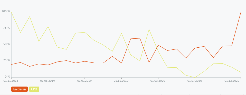 За год работы SEO стало основным каналом по выручке и цене привлечения. Этого удалось обиться за счет внутренней оптимизации сайта и за счет публикации информационных материалов по основным свойствам продукта. По целевым запросам сайт вышел на первую страницу как в Яндексе так и в Гугле. Для продуктовых страниц были созданы турбо-страницы в Яндексе.